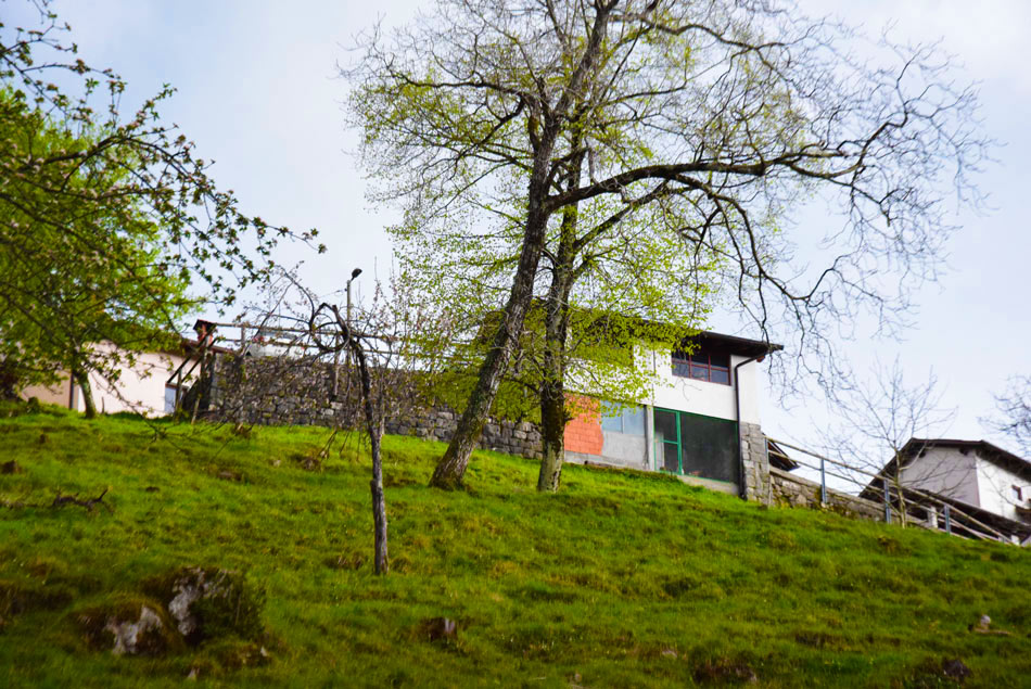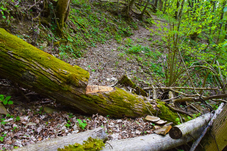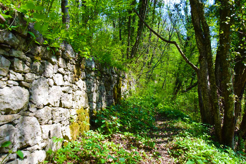 Povratek: Po isti poti se vrnemo do makadamske ceste po kateri gremo sedaj naravnost in ko prečkamo strugo potoka smo desno pozorni na nasprejano modro oznako, ki nas usmeri desno na kolovoz, ki takoj zavije levo. Vzpenjamo se po očitno opuščenem starem kolovozu vasice Podrovne, ki višje preide v stezo. Vzpenjamo se do vrha grape, kjer zavijemo desno in kmalu za tem levo (navzgor se vidi zaselek Močila). Pot nas mora pripeljati do zapuščene in razvaljene vasi Podrovne. Če vasi nismo našli smo zgrešili pot. V levem S ovinku gremo skozi podrto vasico, ki jo je že davno prerastel gozd. Na koncu vasi pridemo do stare vaške ceste, zaraščene, a ji lahko sledimo. Za vasjo nekaj časa hodimo ob kamnitem zidu, nato pa kmalu višje v desnem ovinku prečkamo hudourniško strugo. Nato se slabše vidna pot zmerno vzpenja prečno na breg. Pot ki se višje vzpenja sorazmerno strmo nas pripelje do pašnika pod zaselkom Močila. Sprva nas kolovoz vodi ob spodnjem desnem robu strmega pašnika, nato pa višje zavije levo. Vzpenjamo se po pašniku, višje že tik pod zaselkom pot zavije desno in nas pripelje v Močila. Tu gremo levo po cesti, ki sicer vodi do Močil. Čez morda 400 metrov pridemo do širške asfaltirane ceste, kjer gremo ponovno levo, oziroma naravnost proti Kambreškemu. Te ceste se sedaj držimo vse do naselja Kambreško, kjer zavijemo levo navzdol proti izhodišču do katerega imamo še 200 metrov hoje.